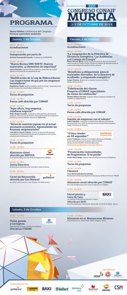 Los ponentes abordarán temas de máxima actualidad e interés para los instaladores, como los reglamentos de ecodiseño y etiquetado energético, que apuestan abiertamente por productos energéticamente eficientes; la modificación de la ley de Hidrocarburos que posibilita a las empresas instaladoras realizar las inspecciones de gas natural, la modificación de la norma UNE 60670 que introduce nuevos materiales para las instalaciones de gas, la transposición de la Directiva de Eficiencia Energética y la contabilización individualizada de consumos, así como las posibilidades que las auditorías energéticas ofrecen a las empresas instaladoras.