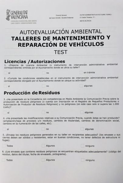 Hace unos días, envíamos a nuestros asociados otra herramienta de autoevaluación que ha puesto la Consellería a disposición de los talleres de vehículos para conocer su situación EXCLUSIVAMENTE respecto a las obligaciones medioambientales. ES SÓLO PARA INFORMACIÓN, NO HAY QUE COMPLETARLA NI REMITIRLA. Pueden descargarla en el enlace.